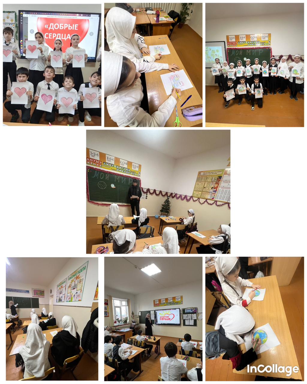 2 декабря Мустаева К.Р. в начальных классах провела классный час «Доброе сердце». В начале мероприятия учащиеся размышляли, что такое добро, доброта, добрый человек. Далее был показан социальный мультфильм «Про Диму». После демонстрации фильма дети сделали вывод: хоть мы все отличаемся друг от друга, но мы можем делить радость общения друг с другом, умеем по-настоящему дружить! В конце мероприятия ребята сделали большое сердце из ладошек и посмотрели мультфильм «Цветик - семицветик» (по мотивом сказки В. Катаева).